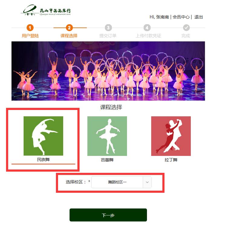 2.選擇舞蹈課程,先要選擇舞蹈種類(lèi),學(xué)校, 然后在選擇課程,如圖
